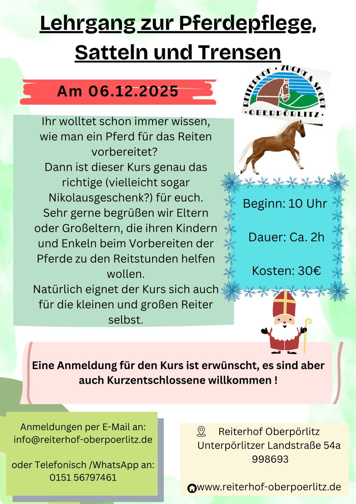 Anmeldung unter: info@reiterhof-oberpoerlitz.de oder: 0160-99102715.