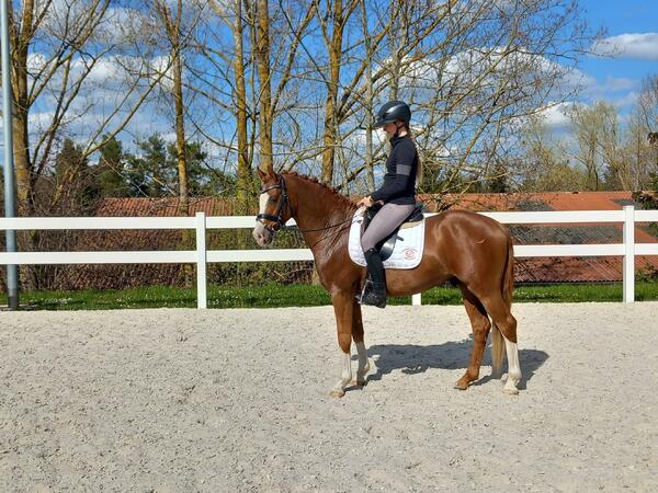 Loreley ist eine im schönen Ponytyp stehende Stute mit guten Grundgangarten.